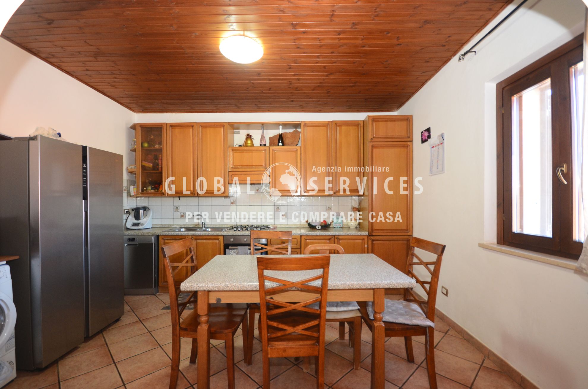 L’appartamento è posto al primo piano ed è composto da sala, cucina abitabile a vista, due camere da letto, bagno, ripostiglio e cantinetta nel sottoscala.