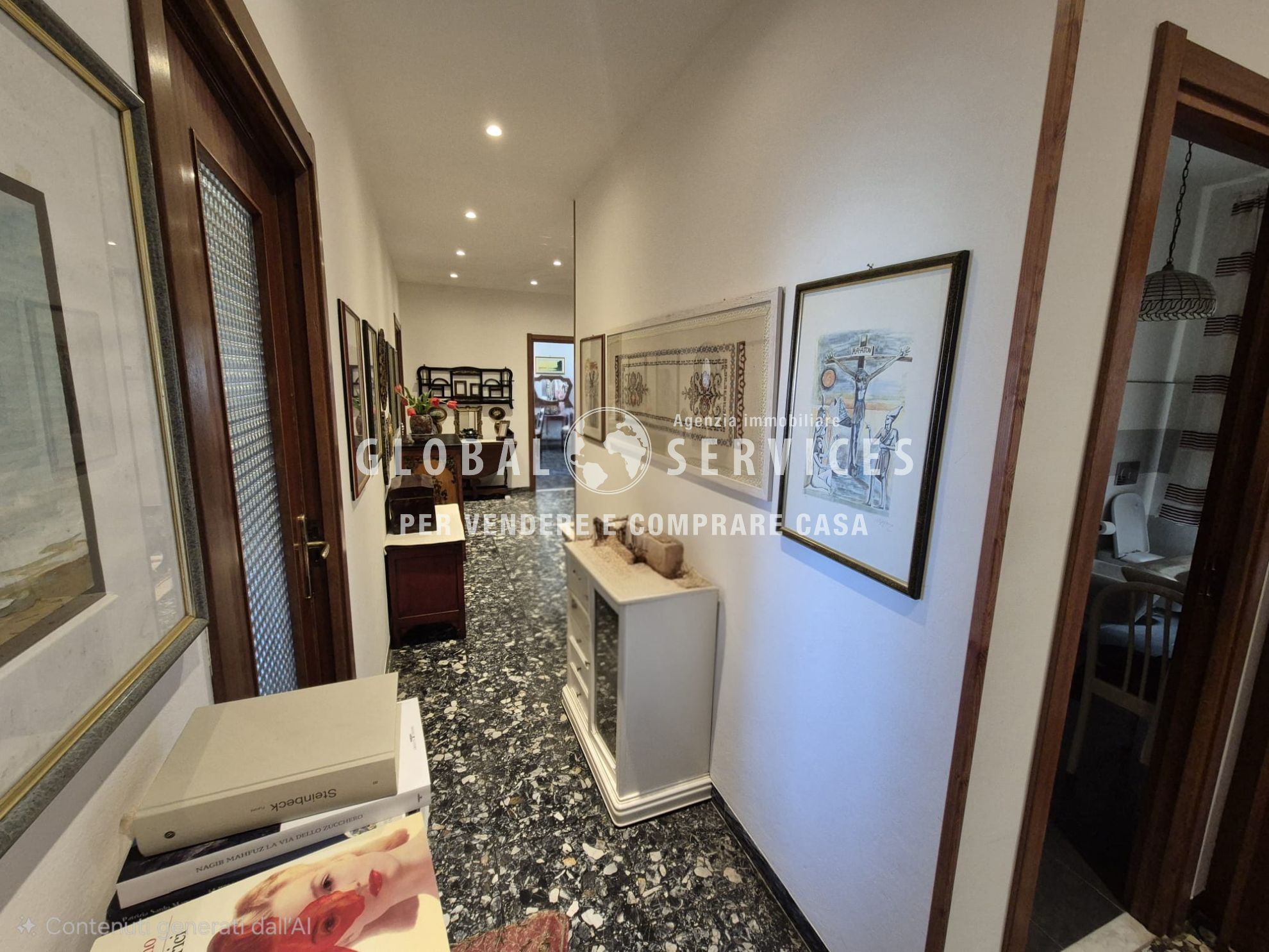 Finiture: Pavimentazione originale in graniglia di marmo perfettamente conservata in quasi tutti gli ambienti, infissi esterni bianchi in PVC e portone blindato.